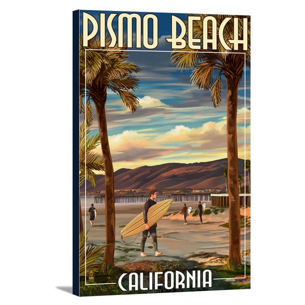 Pismo Beach California Surfer Pier Lantern Press Artwork 12x18 Gallery Wrapped Stretched Canvas Walmart Com